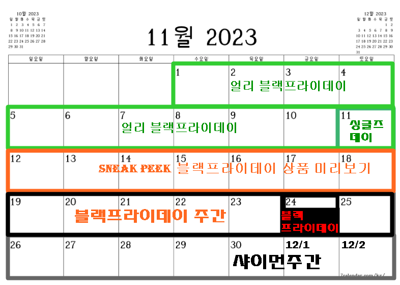 한해중 가장 저렴하게 구입할 수 있다는 블랙프라이데이 기간에는 미국에서 온라인으로 직구할 수도 있는 방법이 있어서 쉽고 편하게 많이들 이용하고 있습니다. 이번 포스팅에서는 2023년 올 해 다가올 2023 블랙프라이데이 기간이 언제인지 알려드리고 스크롤해서 계속 내려보시면 구매에 관한 팁도 상세하게 설명과 함께 있으니 끝까지 보시기 바랍니다.
