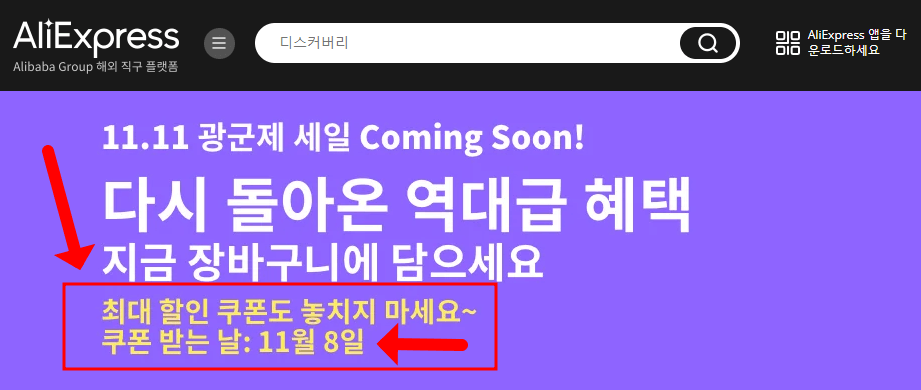 알리익스프레스 광군절 할인쿠폰 발급 : 11월 8일 발급