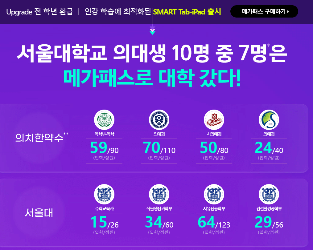 솔직히 이야기해보자. 이런 글을 쓰기가 민망하지만 동네 학원의 선생님과 메가패스 선생님 중에 누가의 강의가 더 좋을까? 메가패스에서 1년에 연봉이 몇 십억씩 되시는 분들의 강의를 들어본다면 아이들이 왜 그토록 그분의 강의에 열광할 것인가를 알 수 있을 정도로 너무 재미있게 이해가 잘 되도록 강의를 하신다는 것을 알 수 있을 것이다.