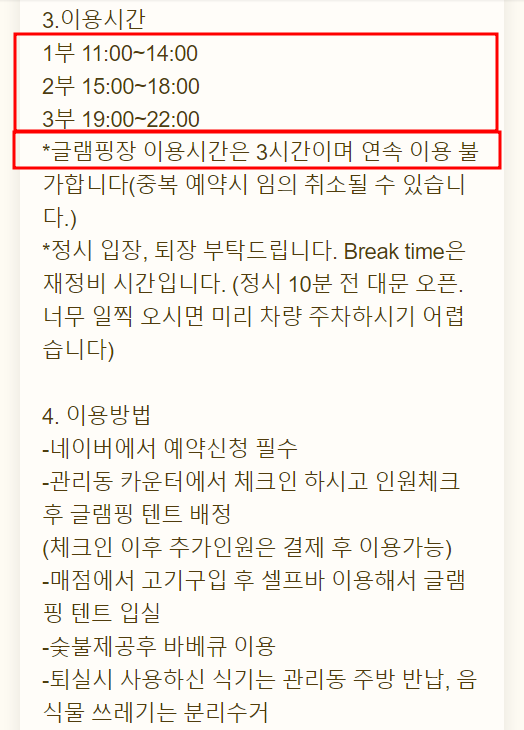 해당시설은 전화예약을 받지 않고 오로지 네이버 예약만을 받는 다고 규정하고 있네요. 그래서 예약 사이트 옮겨 놓았습니다. 예약은 글팸핑의 평일과 주말 이렇게 2가지로 나누어 놓았습니다. 아래 링크를 들어가시면 쉽게 예약 가능합니다.