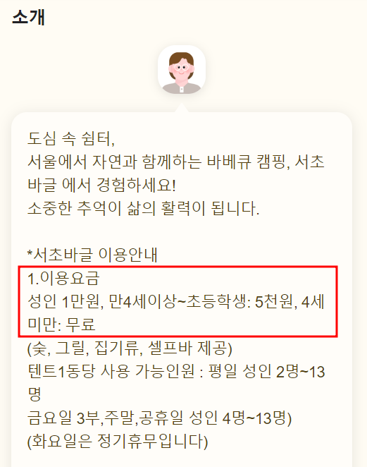 서울 글램핑은 무엇보다 거리가 우선이죠. 여기 강남에서 제일 가까운 서초동 위치한 바글이라는 곳을 소개해드립니다. 청계산역에서 가깝고 시설이 깨끗한 캠핑장입니다. 강남지역이라면 다른 곳 볼 필요없이 이 곳이 제일 안성맞춤인 글램핑장이라고 추천합니다.