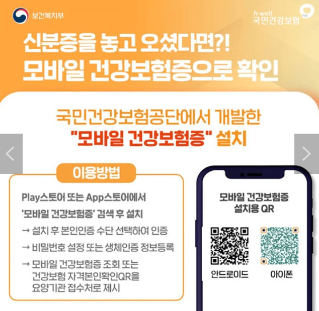 정부에서는 이러한 경우를 대비하여 현장에서 신분증 실물이 없더라도 모바일로 신분증을 대신할 수 있도록 모바일 건강보험증을 설치할 수 있도록 제도적인 보완점을 마련하여 두었고 또한 모바일신분증을 핸드폰에 설치할 수 있도록 함과 동시에 모바일 운전면허증 역시 신분증을 대신하여 인증이 가능하도록 하였습니다.