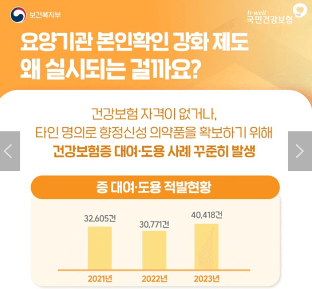 일반적인 건강보험들과는 다르게 국민건강보험은 진료를 볼 때 본인확인이 그동안 잘 되지 않았습니다. 의료기관에 들어가 진료 접수를 할 때 이름과 주소 및 연락처만 기재하면 언제든 진료를 볼 수 있다는 허점이 있었던 것인데 이를 악용하는 사례가 정말 많았습니다. 특히나 치료를 위해 우리나라로 와서 다른 사람의 신분을 도용하여 진료를 받고 다시 출국하는 경우는 뉴스에서도 많이 접하셨을 듯합니다.