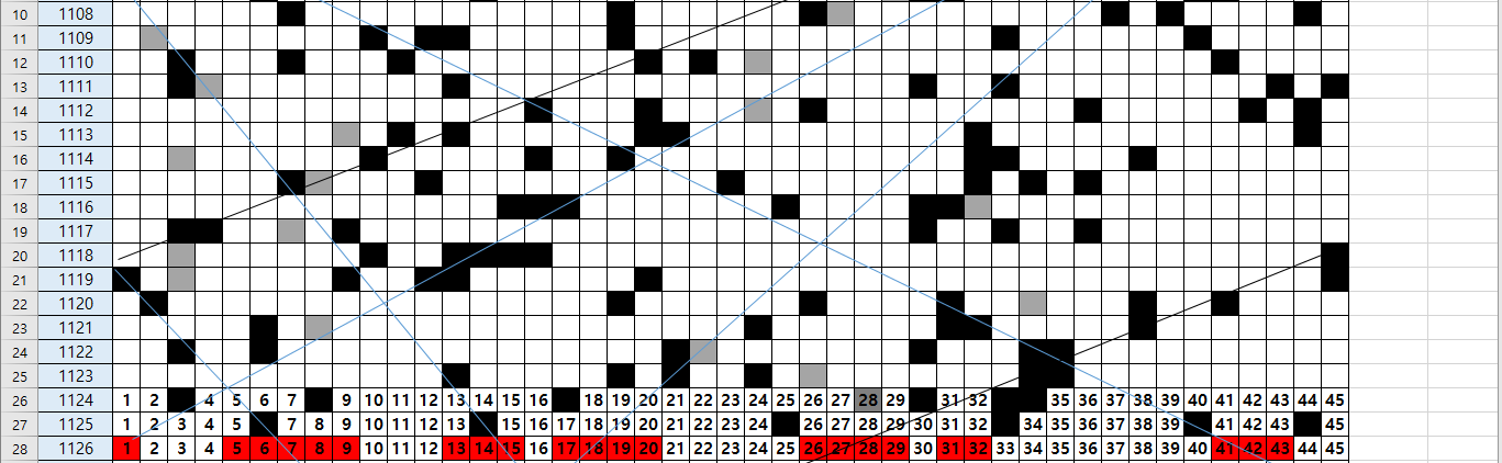 이번 주에도 역시 40번대에서 한 두개 나올 것 같은 흐름입니다. 몇 주간 나오지 않았으니 이번 주에는 40번대 꼭 넣으세요. 이건 순전 제 생각이니 괜히 나 따라 번호 고르시고 욕하지 마세요.1!!