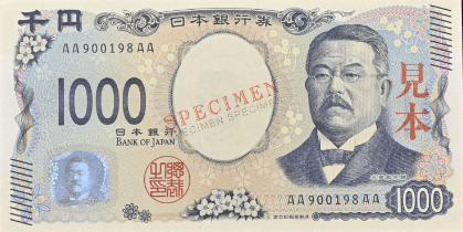 - 1,000엔 지폐: 일본의 유명한 의사이자 학자인 북촌 마사타카의 초상이 그려져 있습니다.