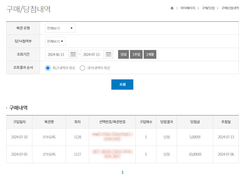 2. 구매/ 당첨 내역