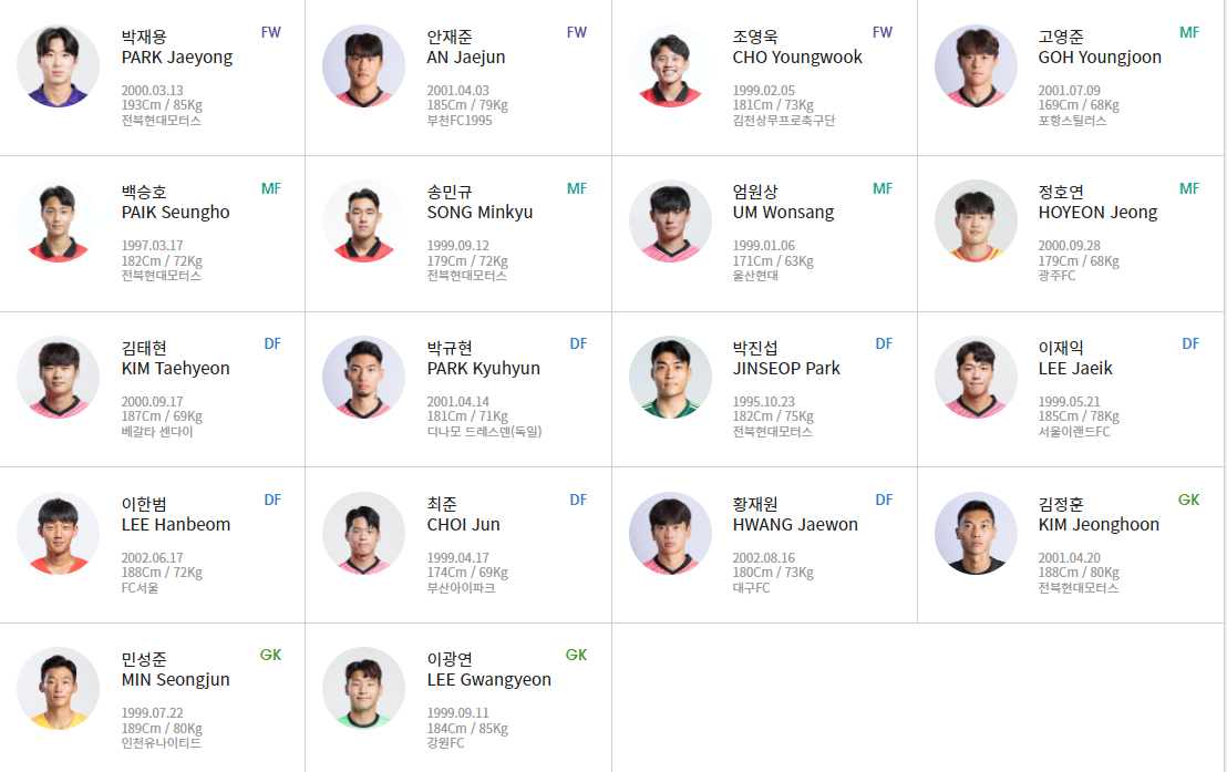 4. 축구 대표 선수 명단