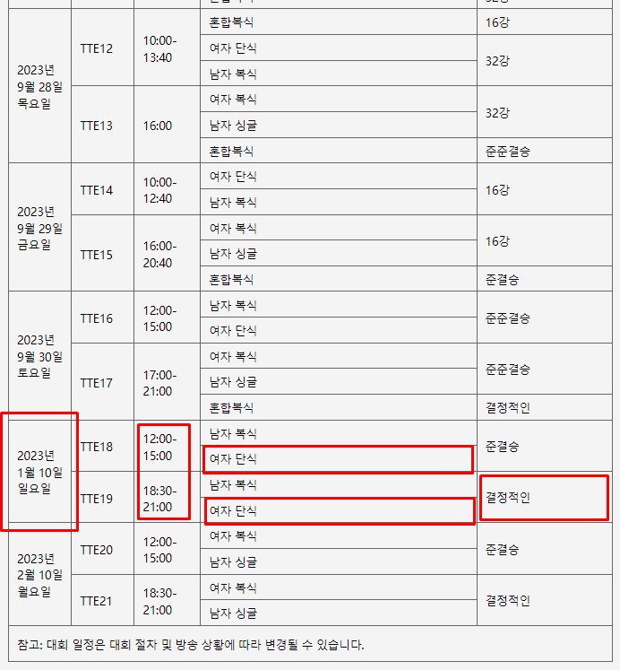 3. 아시안 게임 일정