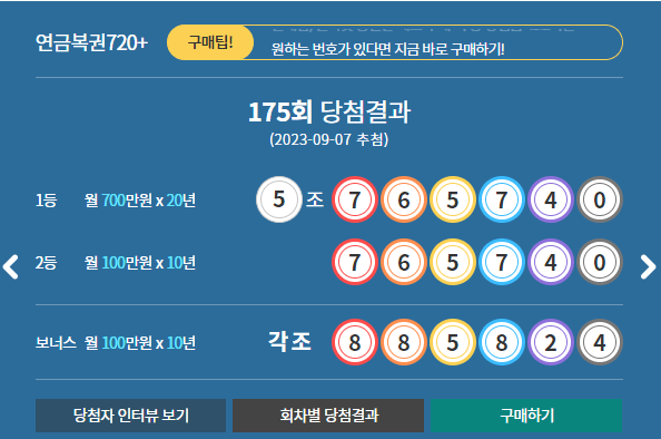 2. 제175호 연금복권 720+ 당첨번호