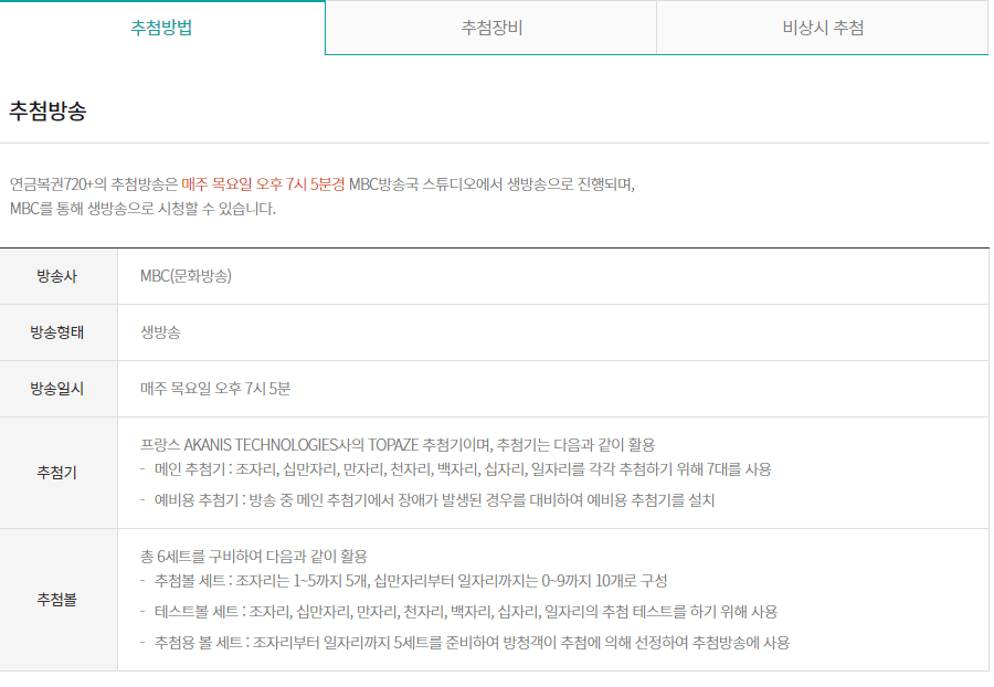 연금복권의 추첨시간
