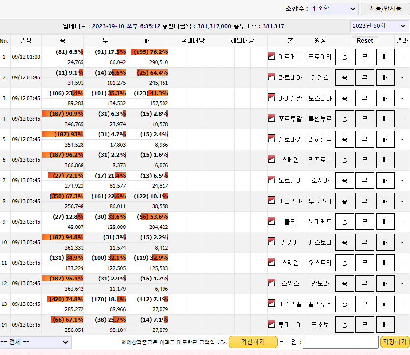 그나마 역배를 찾는다면 그나마 5번, 9번 13번 경기가 될까요? 나머지는 정배 확률이 90%는 넘어 보여요.