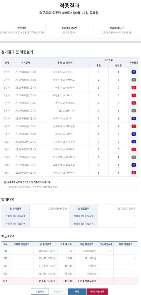 지난 승무패 1등 당첨 수