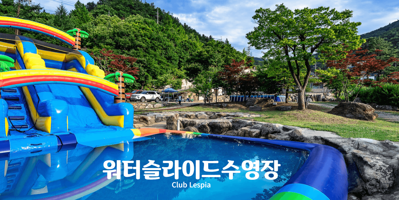사진을 보시면 워터슬라이드가 있고 메인 풀장이 있습니다. 멀리 바닷가를 가지 않아도 수영이 가능하고 어린아이들이 즐길 수 있는 놀이시설이 있습니다. 시끄러운 캠핑장소보다는 가족 단위의 몇몇 가족분들만 이용할 수 있는 이런 조용한 곳이 있다면 다른 곳에 갈 필요가 있을까요?