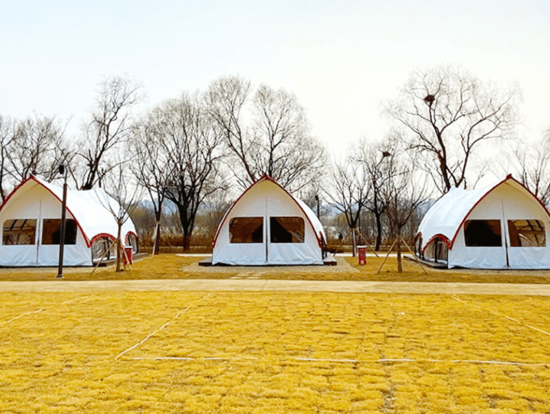 이곳은 25개의 데크 캠핑장과 3개의 글램핑 건물로 구성되어 있어 텐트를 직접 설치할 수 있습니다.